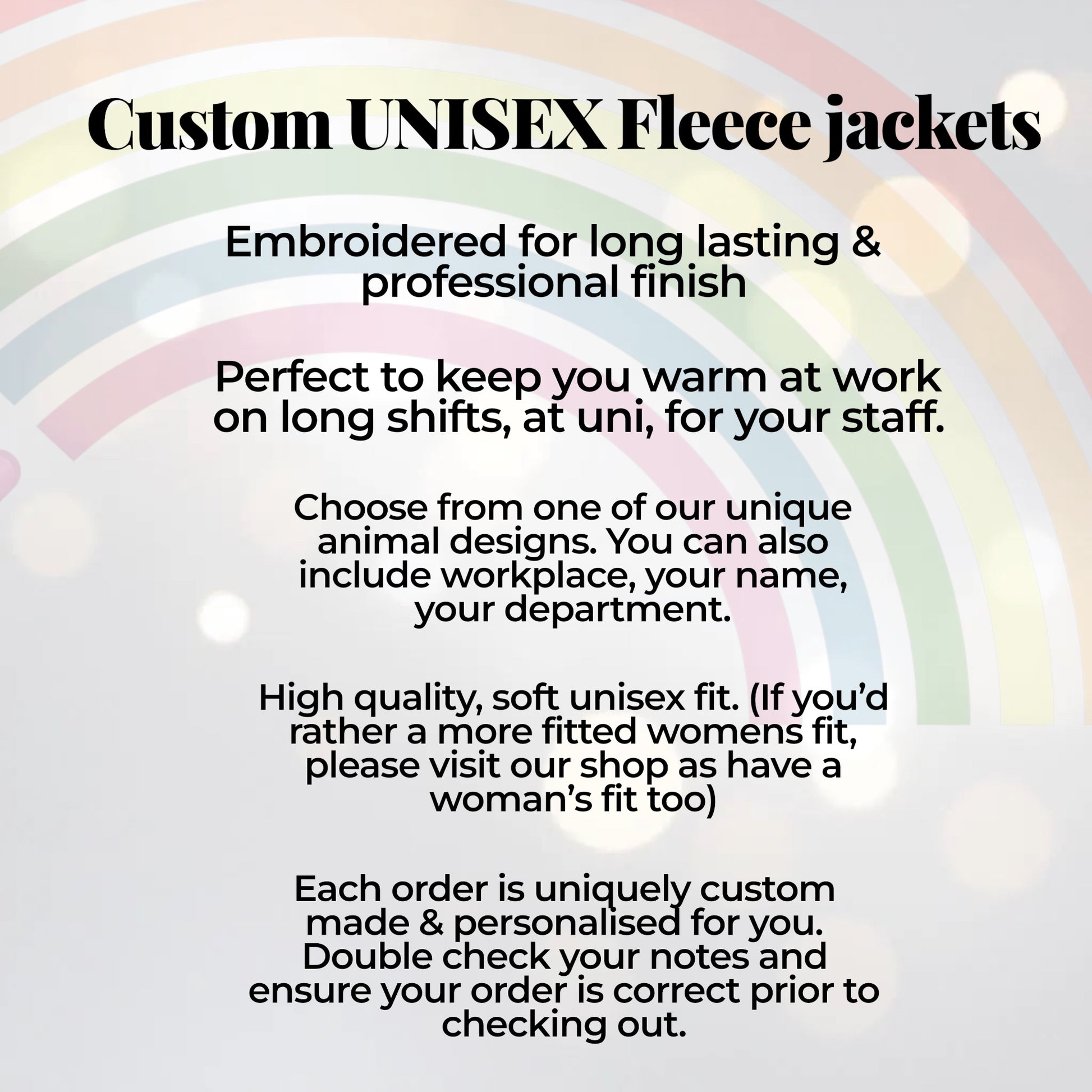 Cute Animal health worker / teacher UNISEX personalised fleece