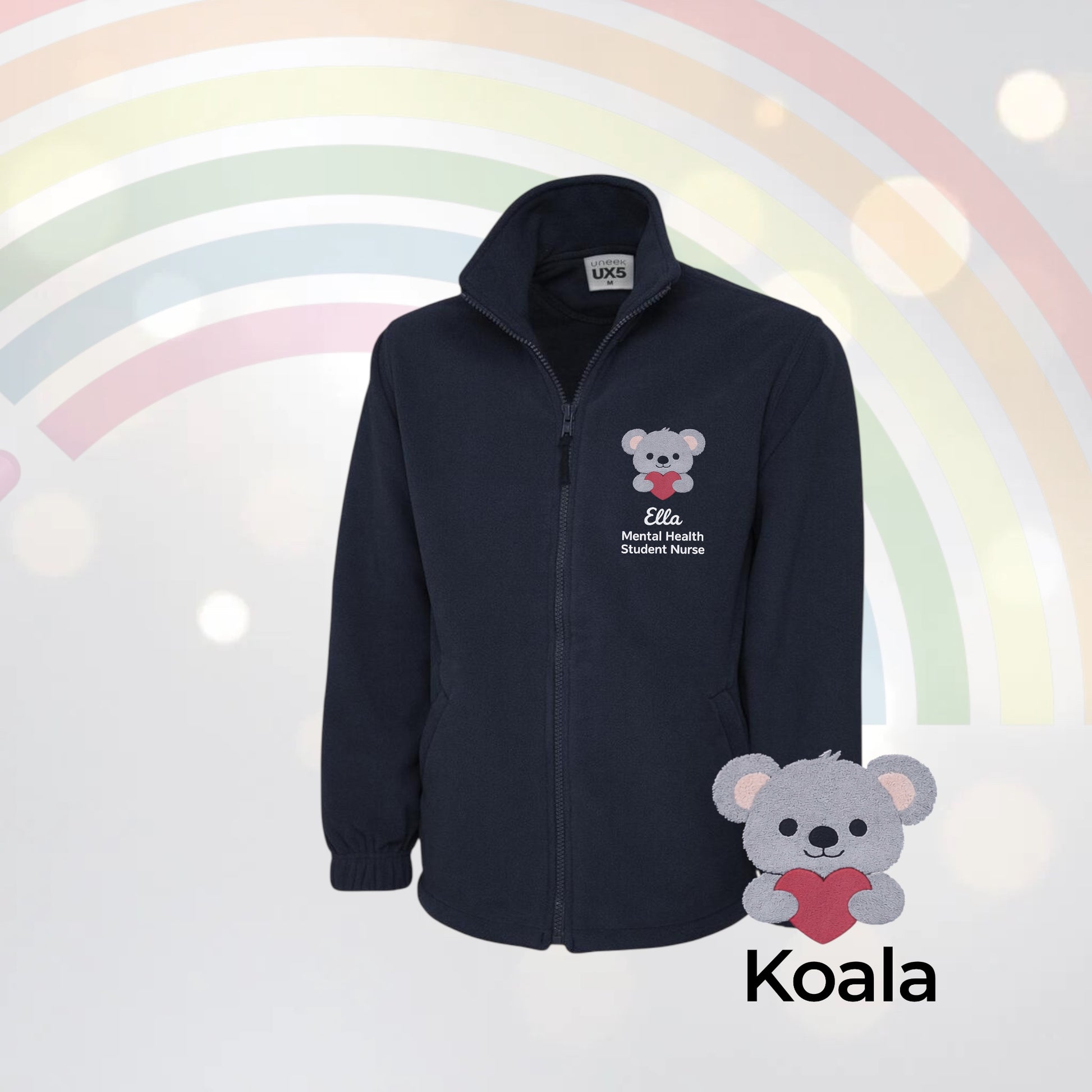 Each fleece is personalised with a name, job title, and place of work, and finished with one of our cute embroidered animal designs – subtle, professional, and full of personality.