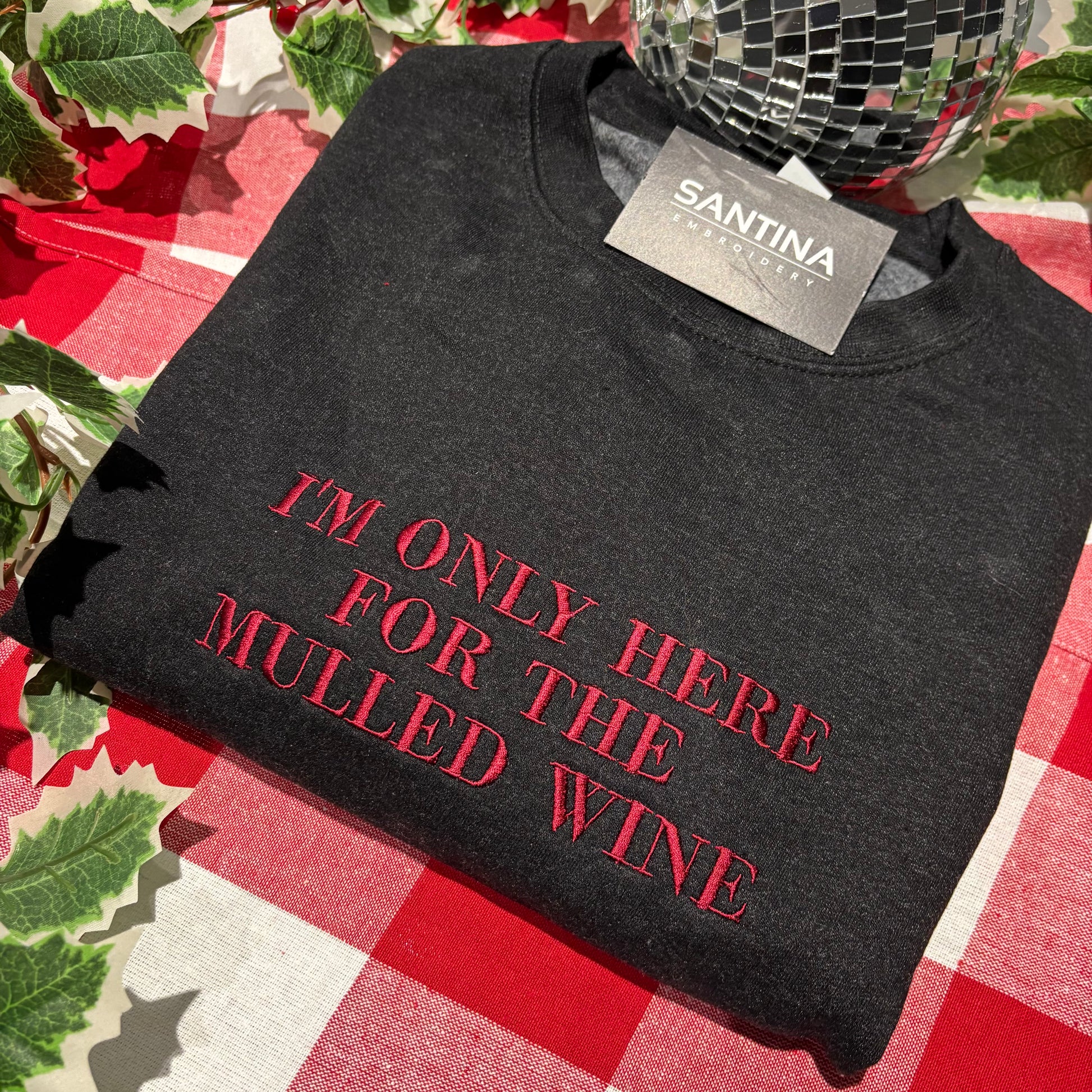 Our I’m Only Here For The… sweatshirt (or hoodie — your choice!) lets you say exactly what you’re showing up for this festive season. Whether it’s the roast potatoes, mulled wine, Baileys, or the festive nap that turns into a full-on coma, make it your own with fully custom embroidery.
