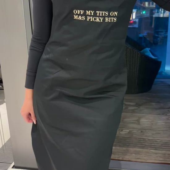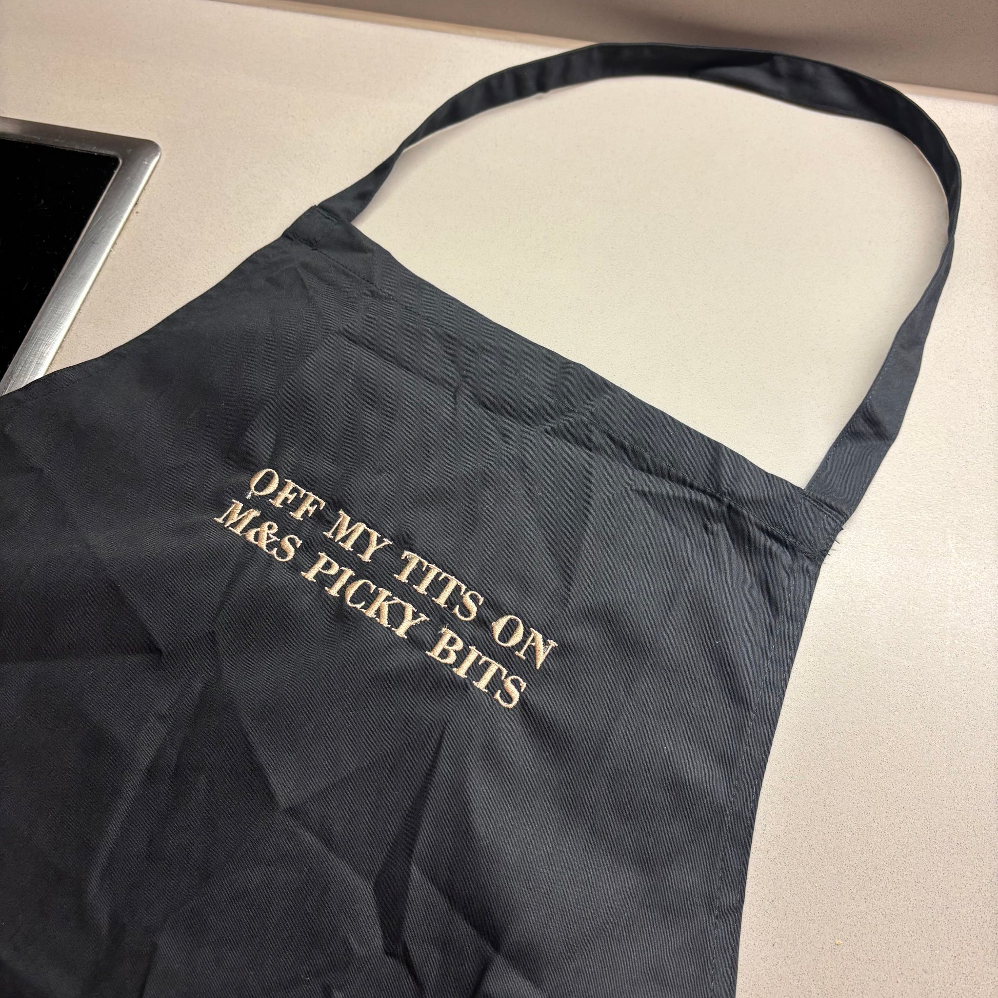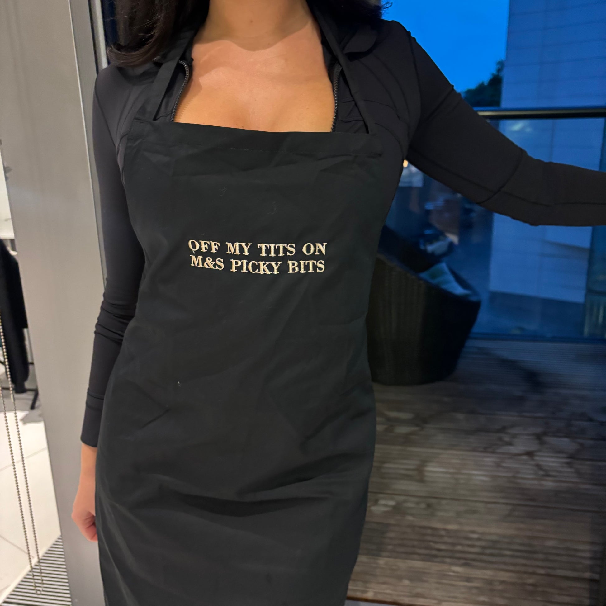 Off my tits on M&S picky bits unisex kitchen apron 🧑🍳