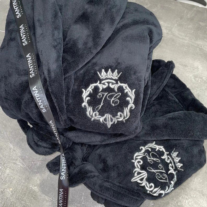 Our royal crest embroidered robes are available as a dingle robe or as Set of two soft fleece luxury unisex dressing gowns, embroidered with initials inside a detailed rich and royal crest design, in any stitch colour of your choice,