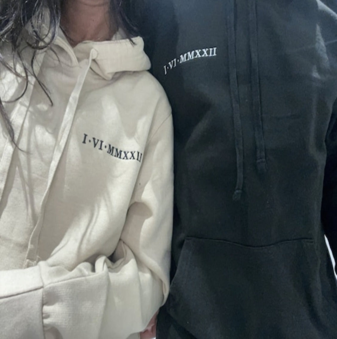 Our bestselling hoodie, embroidered with your special date such as an anniversary, or birthday in Roman numerals. perfect for couples to match, add eachothers initials to the sleeves too!